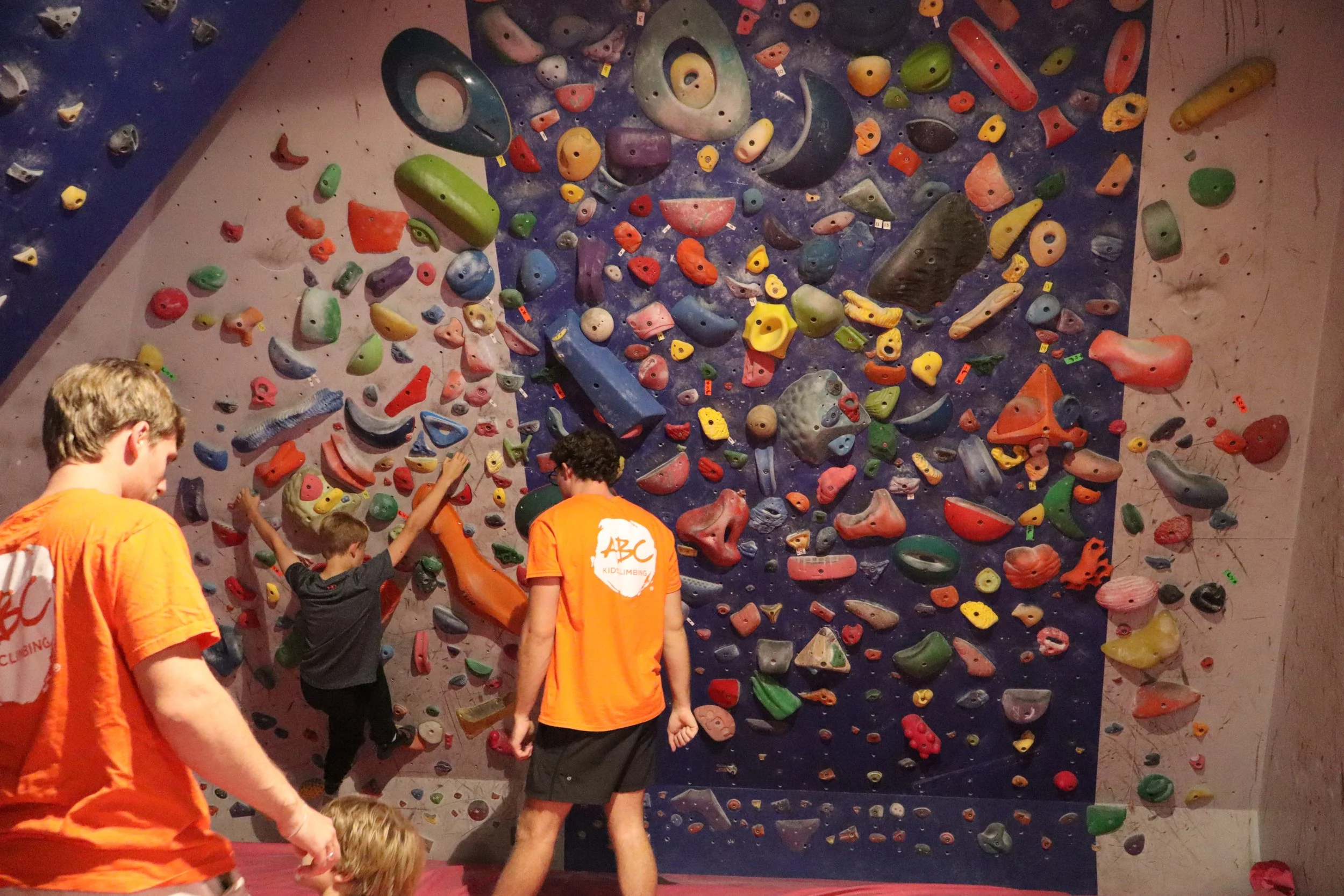 ABC Kids Climbing is the only climbing gym in the world with over 7,200 square feet built specially to foster growth, development, amazing climbing and athletic skills in kids. All kids from age 2.5 to 19 have access to ABC’s state-of-the-art climbing facility, through classes, teams, clubs, camps, and birthdays. Our ABC Room is designed and equipped specially for kids ages 2.5-5 to foster physical and mental development through movement. Adults may enjoy climbing our amazing routes during our All Ages open gym slots. This includes bouldering, top-roping, and the training area. While this facility will produce a lot of fun and games for kids of all ages and abilities, it is also the home and training grounds of ABC’s elite team, which includes international champions and Olympic climbers.